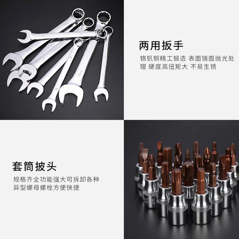 Car repair kit set, multi-functional socket wrench set, combination sleeve, ratchet plate, hand repair car hardware tool
