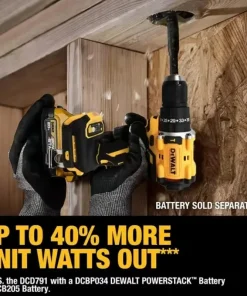• Complete challenging projects with up to 40% more UWO** vs. the DCD796B using DCB205 battery or DCBP034 DEWALT POWERSTACK™ battery (sold separately)