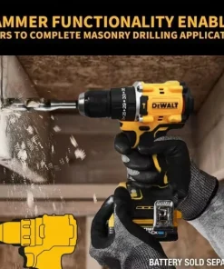 •Designed to help you complete demanding fastening and drilling projects, this 20V MAX* XR® Brushless 1/2 in. Hammer Drill/Driver delivers the durability and performance professionals need on jobsite. Quickly drive fasteners into thick material with its powerful brushless motor, which outputs up to 40% more Unit Watts Out compared to DCD796B using DCB205 battery or DCBP034 DEWALT POWERSTACK™ battery (sold separately)**. Speed through masonry drilling applications with up to 34,000 bpm thanks to an integrated hammer mode function. This lightweight, well-balanced Hammer Drill/Driver was built compact to help users comfortably work in tight spaces for extended periods of time. The 3-position, pivoting LED is designed to enhance visibility in dimly lit work areas with its 3 mode settings and up to 70 Lumens of brightness.